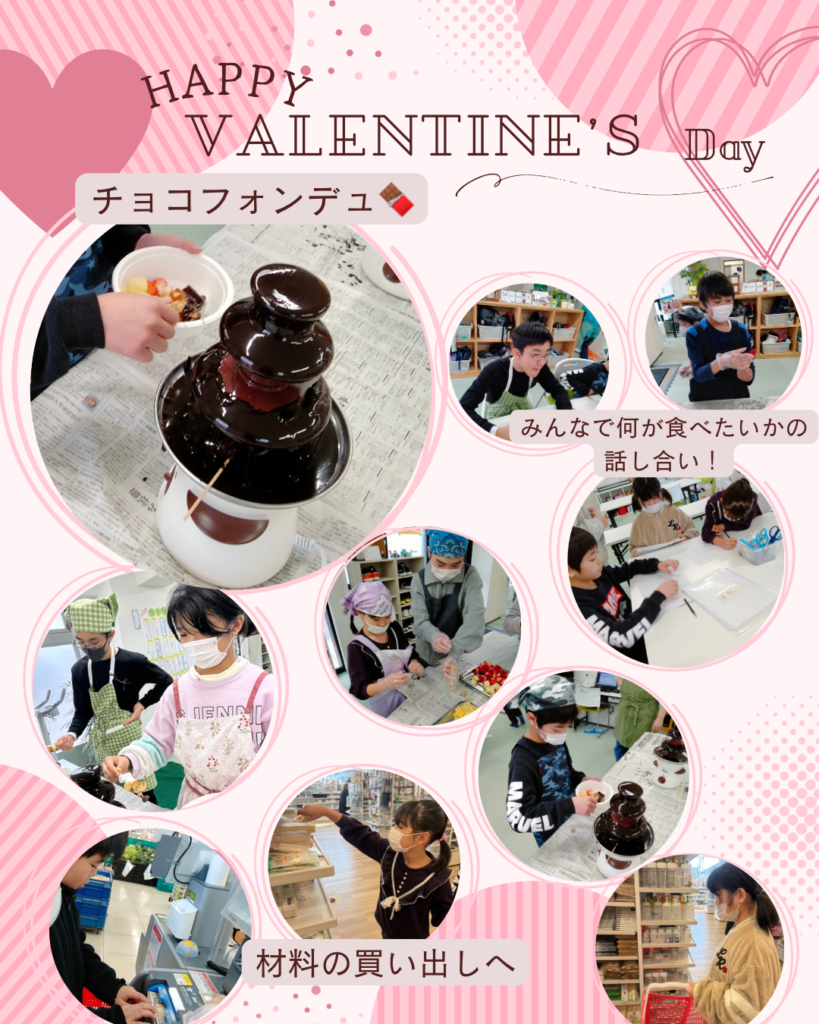 バレンタイン企画♪チョコフォンデュ作り&お買い物体験の様子
